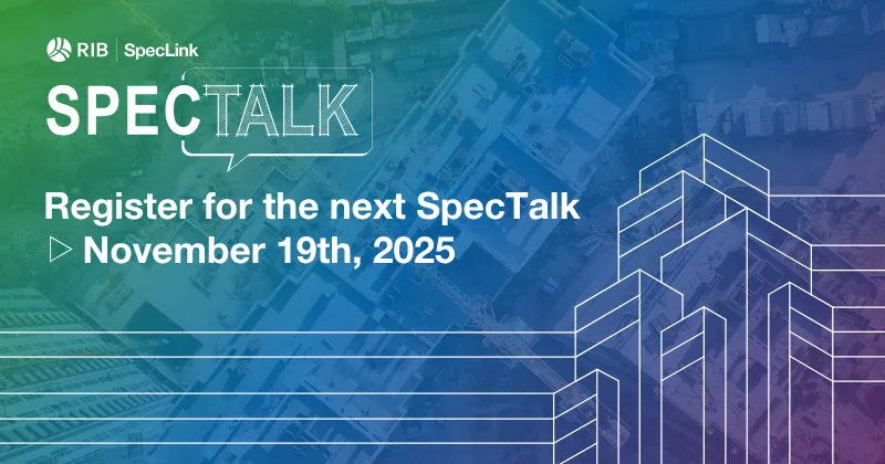 Each SpecTalk episode features in-depth discussions about key topics like specification writing, sustainability, collaboration, and integrating BIM into specification workflows, to name a few. Our experts also share valuable tips and tricks about RIB SpecLink to help you can make the most of our software.